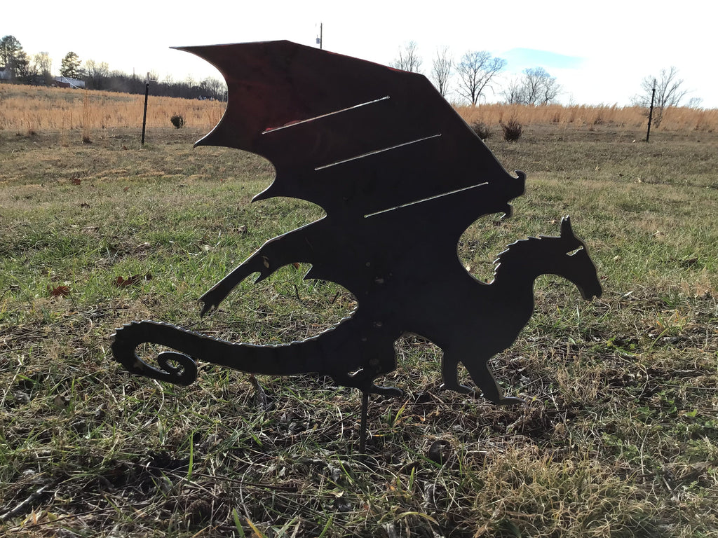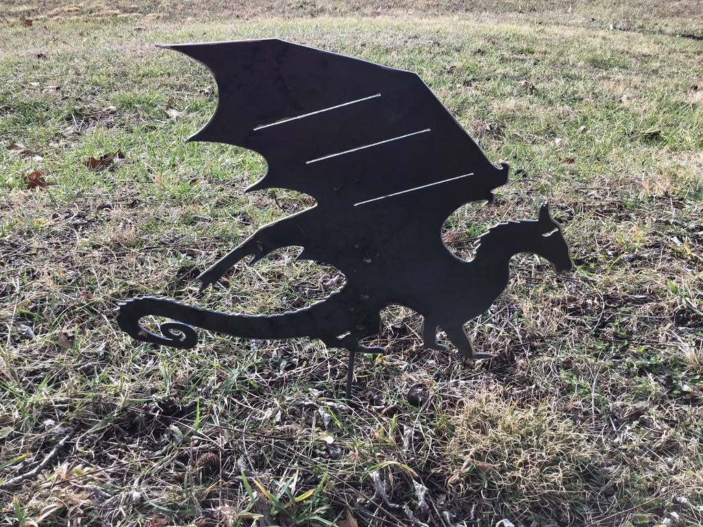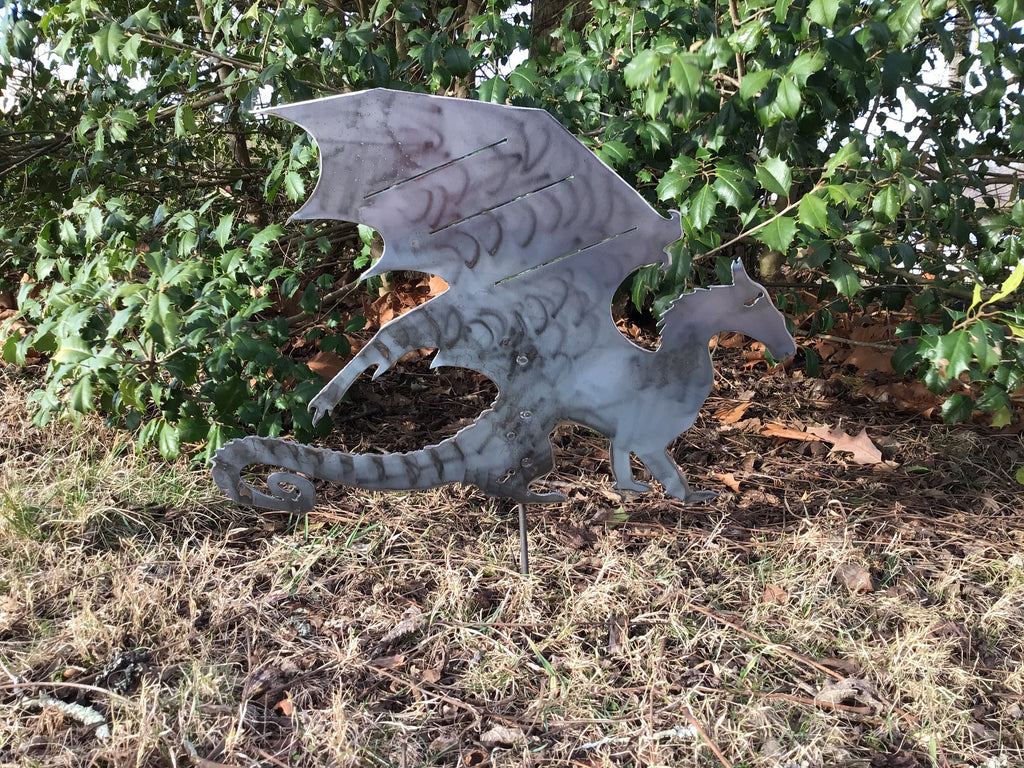 Banshee Garden Stake is cut out of 16 gage metal in our workshop. It is then acid dipped and sanded, and we weld a 7” pencil rod onto the back so it can be set up easily in the yard.