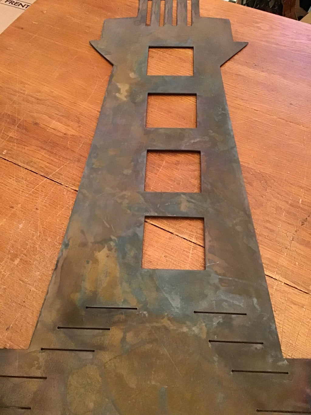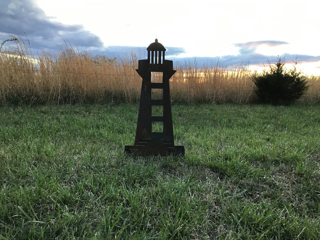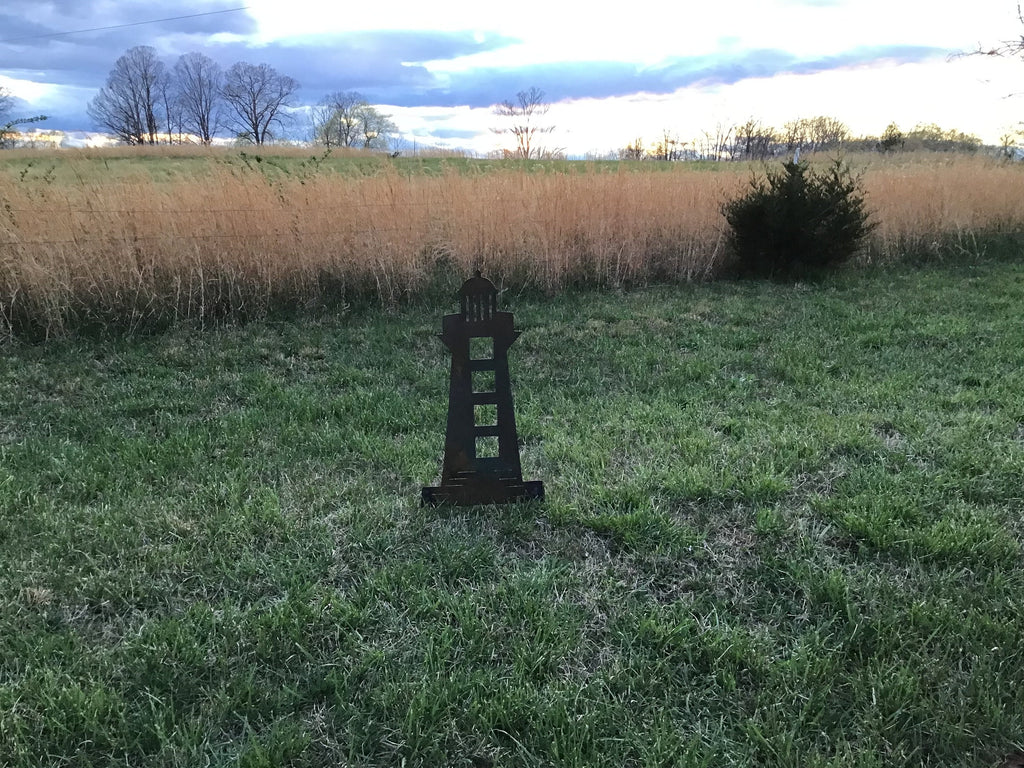 Based on the architectural style of our great North American Lighthouses, this Lighthouse Garden Stake is cut out of 16 gauge metal, and has two 5” pencil rods welded on for easy installation.