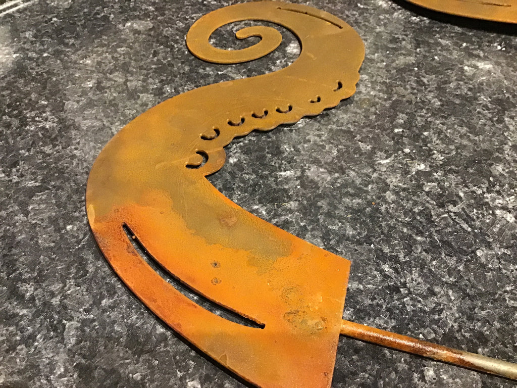 5 piece Octopus Garden Stakes in a Natural Rust Finish.