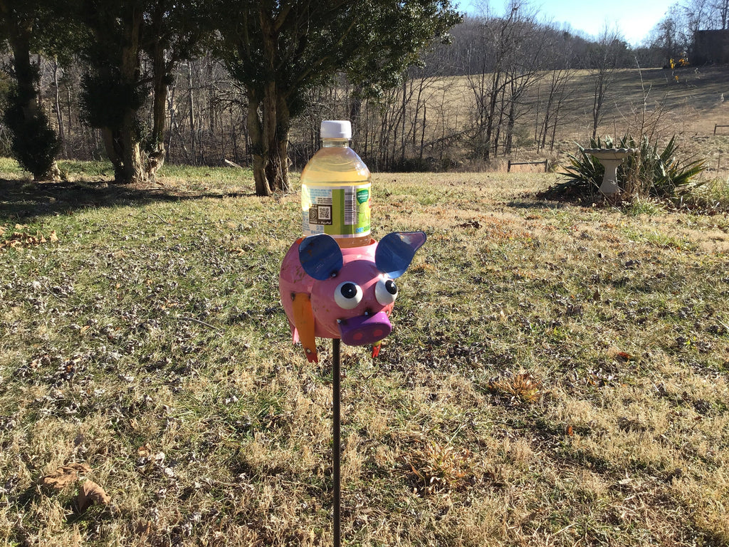Cute pig planter painted & enameled for outdoor use that can be displayed alone, or on the included 2 ft. garden stake.